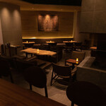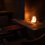 店名はスペイン語で「地下へ」という意味。その名の通り地下1階に位置する店内には、イミテーションではなく、本物の薪を使用したこだわりの暖炉が置かれ、非日常空間を演出します。パチパチと燃える火を眺めているだけで、癒やしの時間が流れます。暖炉と一体化するように、上質な北欧家具が配置され、一人でくつろげるカウンター席5席と、しっとりと親しい人と語り合えそうなテーブルが9卓あります。