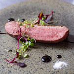 メインディッシュの鴨のローストは低温でじっくりと火入れされ、美しいロゼ色に仕上げられていた。シンプルに塩やマスタード、バルサミコソースでいただく。クラシックなフレンチの手法で絶妙な柔らかさで焼かれているため、シルキーな噛み心地。鴨特有の旨味もしっとりとやってきた。
