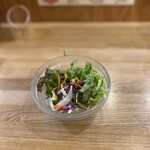 パスタは全品サラダ付きで、+150円で大盛(1.5倍)にもできます。トッピングメニューは「粉チーズ」50円、「納豆」50円、「揚げナス」100円、「モッツァレラチーズ」100円があり、ドリンクはソフトドリンクの他「生ビール」450円や「グラスワイン」(赤・白/各350円)も提供しています。