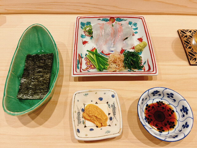 2013年、寿司店の居抜きでカウンター6席、個室1つの小さな店を構えたのは曙橋。出店から5年目の春、現在地に移転し、カウンターをメインに個室3室を備え、以前の倍にあたる席数を確保、自身が思い描く理想の空間をつくり上げた。2~6人に対応する使い勝手のよい個室は、会食や接待などに重宝されている。