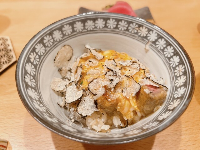 「トリュフご飯自体はうちが始めたものではありませんが、少し手を加えることでお客様に喜んでいただけるよう工夫しています」と原氏が話すように、ひれかつ丼にする、地鶏の卵黄をかけてコクを出すなど、一ひねり加えた食べ方も。初めはそのままで、2杯目に卵かけご飯やかつ丼で堪能するのがおすすめだ。
