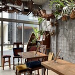 店名の「貯水葉」は観葉植物としても楽しまれているビカクシダ(コウモリラン)の、水をためる葉の名前。ビカクシダと魯肉飯が好きな店主が、好きな物を掛け合わせた店をやりたいと、店内にはシダがたくさん飾られています。ビカクシダは、葉の中に水をためることで上から落ちてくる虫や葉を受け止め、害虫や鳥から根を守る働きもします。花言葉は「信頼」や「助け合う」という意味があり、良縁を引き寄せるパワーがあると言われていて、囲まれていると運気も上がりそう。アンティーク家具が置かれた打ちっぱなしのグレーを基調とした店内で、ビカクシダを眺めながら「魯肉飯」を食べていると、異国のローカル食堂にいるような気分に。外出が気持ち良い季節、小トリップ感を楽しめる魯肉飯専門店に出かけてみてはいかがでしょう。