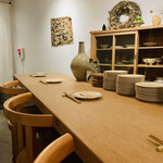 代官山の駅近くに、グレーの石畳に小さな白亜の2階建ての建物が集まった商業施設がある。「toco(トコ)」は、この場所に同じ施設内の「Baro」の姉妹店として2022年2月にオープンした。コンセプトは「おばんざいとナチュラルワインの店」。2階にある店の扉を開けると、白い割烹着のようなブラウス姿の女性2人がカウンターの中で、くるくると立ち働く様子が目に入って、ほっこりした気持ちになる。
