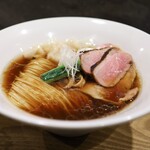チャーシューは豚と鴨の2種類で、豚は肩ロースでレア感のある仕上がりでしっとり柔らかく、しっかりとした肉の旨味が魅力的で美味しかったです!鴨はロースでレア感ある仕上がりで軽く野趣感ある味わいで仕上がり良かったです!