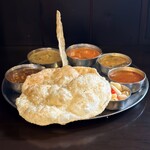 「本日のカレー3種」1,200円は主食を選べます。ナン(大)、ハーフナンとイエローライス、そして100円追加でチョティワラ系の名物であるチーズクルチャとイエローライスに変更も可能とあらば、チーズクルチャを選ばないわけにはいきません。