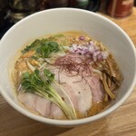 鶏に香味野菜と思われる出汁メインで、後半魚介も少し感じます。