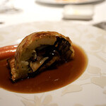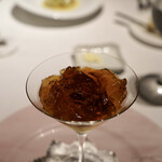 内容はその季節の旬の素材を使った料理がメインとなりますが、スペシャリテとして不動の人気なのが「人参のムースとコンソメジュレ ウニ添え」。人参の自然な甘さがあるクリーミーなムースと、旨みに満ちたコンソメジュレとの組み合わせは絶妙なバランスで、一口食べれば顔がほころびます。