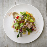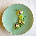 日本三大八幡である福岡県の「筥崎宮」内にあるフレンチレストランです。35周年を機に6月5日にリブランディングオープンしました。同じく宮の施設である「花庭園」の中で目の前が四季折々の美しい石庭というのは同じですが、ディナータイムにはその石庭が7色にライトアップ! 幻想的な世界が広がります。劇的な変化を遂げたのはレストランの料理。以前は王道フレンチでしたが、リブランディングで九州の食材を使用し、見目麗しく、でも何を食べているかしっかりと伝わってくる“モダンガストロノミー・モダンジャパニーズフレンチ”にチェンジしました。モダンガストロノミーといえどもフランス料理なのでソースも絶品。そこが、シェフの坂山央樹さんのセンスと言えるでしょう。