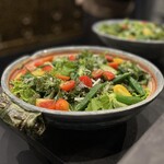 食のことで知らないことはないのではと思うくらい、ものすごい探究心のある石田さんが作る朝食は「白湯」から始まり「炭酸水or天然水orかぶせ茶」「トマトジュース」「朝採れ野菜」「作りたての豆腐」「蒸し卵と目玉焼き」「八寸」「自家製納豆」「魚料理」に「羽釜で炊いたごはん2種と自家製辣油」「味噌汁」「漬物」「抹茶」「デザート」となり、一番茶を使った「ほうじ茶」で締めくくるのですが、それらすべてが最高の食材を最高の調理法で作った“究極のひと品”なのです。ご飯のお供がおいしすぎてお代わりの連続。気づけば1時間半も経ちお腹はパンパンです。