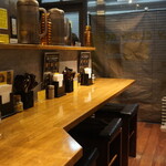 広くなったのですが席数は逆に1席減らした6席となり、全席がキッチンを囲む形のカウンター席となりました。移転前の店舗から持ってきた暖簾もキッチンの奥に健在です。