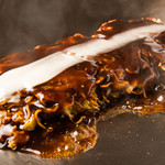 そして、主役の登場「お好み焼き」。独特の細長いフォルムは、東京仕様なんだとか。