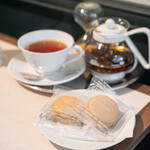 購入の際はショーケースに並ぶ50種類の焼き菓子から自分で選んでいくのですが、目移りするようなおいしそうなものばかり。おすすめは、函館の店舗で人気の「フランボワーズクリームサンド」324円で、バターの香りが良く軽い食感のサブレと、甘酸っぱいフランボワーズのジャムは相性抜群です。看板商品のひとつ「ダックワーズ」324円は「紅茶」や「フランボワーズ」「キャラメル」など、8種類のフレーバーを展開しています。他にも「紅茶のラングドシャ」302円や「リーフパイ」302円など、魅力的な焼き菓子が多彩にあり、ついつい多めに買ってしまいそうです。