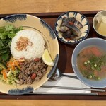 野菜もたっぷり、見た目も鮮やか。スパイスを使った料理が多くて、刺激もあり。でも辛いだけじゃない!