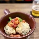 定食ではなく、おつまみで始めたいという人の最初の一品としておすすめなのが「おまかせおつまみ盛り」。こちらも日替わりで5〜6品の前菜が盛り合わせになっている。季節の野菜や肉、魚の気の利いたおつまみがちょこちょこつまめて、どれもワインを誘う味付け。一人飲みでも楽しくなる彩りがいい。