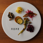 公式SNSに豆鼓、青山椒、馬告といったスパイスの写真がずらりと並んでいるように「nope」でいただけるのは、多彩なスパイスのエッセンスを巧みにプラスし、旬の食材のおいしさを生かしたオリジナリティあふれる中華料理です。
