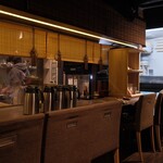 地下1階の店内は、スタイリッシュで落ち着いた雰囲気。駅から近いですが、原宿の喧騒から離れて、ゆったりとくつろげます。客席は、一人でも食事がしやすいカウンター6席と、ほどよい間隔をあけてテーブル席が4卓です。