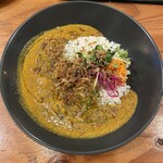 カウンター8席とテーブルが1卓というコンパクトな造りの店内で、ワンオペで意欲的なメニューを提供します。各種アチャールやメインの名物になりそうな「宝塔肉」、皮より肉を楽しむタイプの「ラムと中国セロリの焼き餃子」、そして締めもカレーはもちろん、実山椒と香港麺のつゆそば、黒ゴマを練りこんだ冷麺など充実。隣のビルにはアチャールで有名なインド料理店「ハバチャル」もあって、人気スポットになりそうです。