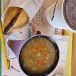 「サルテーニャ」という、ボリビアの名物ファストフードが売りです。これはビーフ、ポーク、チキンなどのこま切れ肉と野菜、スパイス、ゼラチンを小麦粉、鶏卵、砂糖、ラードを混ぜた生地で包んで焼いた、うまい総菜パンのようなもの。他にもトマト煮込みライスなどもあり、2階でイートインもできます。