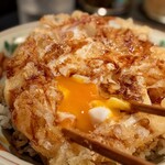 半熟のとろとろ卵に、さくさくの天かすがのった、お蕎麦と一緒に食べたい一品!