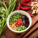 タレのオススメは、ピーナッツ、ニンニク、辣油、胡麻油、オイスターソース、塩少々、胡麻をブレンドしたもの。濃厚なコクのある味わいになる。もっと辛くしたければ、追い唐辛子も可能だ。