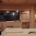 新店舗は本物の材質にこだわって、ふんだんにヒノキと杉を使い、シンプルながら落ち着いた雰囲気になっています。炭台も料理人の手元も見えるフルオープンキッチンで、白を基調としたカウンターに、客席は8席です。ゲストの目の前で全ての料理が作られ、味、温度、香り、全てを最高の状態で楽しむことができます。