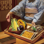 現在は2023年10月31日(火)までの期間限定で「リニューアル記念コース」(ランチのみ)22,000円を提供中。名物の「生雲丹の大葉巻き」をはじめ、今回のリニューアルOPENのために料理長が選び抜いた“旬”の食材を天ぷらにした、味わい尽くしのランチコースなので、この機会に是非味わってみてください。
