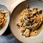 肉料理のおすすめは「牛リブロースのロースト 牡蠣出汁と玉子のカルボナーラソース」。「しっかりと噛み締めて旨さが出る赤身の部位を使っています」とシェフの菅田翔太さん。牡蠣を焼いてとった出汁とカルボナーラソースで、肉料理に魚介の旨みとクリーミーさを足しながらいただく。さらに万願寺唐辛子のピリッと感もプラスされていた。これから深まる秋に向けて、その濃厚さがますますおいしく感じられそうだ。