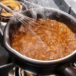 土鍋に入ったカレーのルウは、ぐつぐつと煮立っていました。
