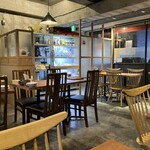 店内はコンクリート打ちっぱなしで、シンプルながら洗練されたモダンな空間。大きな窓が開放的で、ランチタイムは明るく、ディナータイムは温かみのある落ち着いた雰囲気になるよう、シーンによって照明も変えています。キッチンはガラス張りで、シェフが調理する姿を見ることができ、ライブ感も楽しめます。客席は30席で、20~50名の貸し切り利用も可能です。