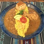 『● あいがけカレー (2種類) + スパイス卵 / 1200円