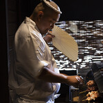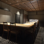 同店があるのは、繁華街でありながら、下町の風情を残した四条大宮の閑静な住宅街。店内はシックでスッキリとした空間で、中央にカウンターがあり客席は8席です。17時半~と、20時半~の2部制で、完全予約制です。