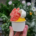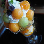 初訪問の喫茶店。ふんだんに果物を使った季節のフルーツパフェがおすすめ。