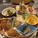 松花堂弁当的に色々な素材を一度にいただける贅沢感が素晴らしい。
