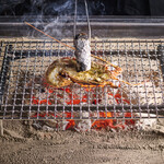 ここでメインの伊勢海老。炭で焼いて香りを付ける。