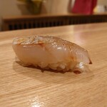 祐天寺駅から歩くこと8分。静かな住宅街が広がるエリアにポツンと見えてくるのが「目黒すし太一」。“太一”の文字を染め抜いたのれんが風格を感じさせる入口を入ると、わずか6席をゆったりと配置したカウンターが落ち着いた雰囲気を醸し出しています。