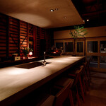 中へ入るとレトロな雰囲気の外観とは一変、カウンター6席のシックでモダンな空間が広がる。なぜか友人宅に招かれたような居心地の良さを感じるのはここが料理研究家のサロンだったせいかもしれない。コース料理は18時ドアオープンで18時15分一斉スタート、21時半過ぎからはアラカルトで楽しめる。