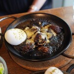 カレーは鉄鍋で提供されるため、最後までアツアツの状態でいただけるのもうれしいポイント。カレーには、ミニサラダとルーとチキンに合うターメリックライスが付き、ライスの大盛やおかわりは+100円です。また、+200円でドリンクセットにもできます。トッピングには「半熟卵」と「チーズ」があり、どちらも100円です。
