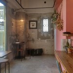 小町通り沿いにあるテナントビル「ランプ雪ノ下」の2階にある同店は、コンクリート打ちっぱなしの壁と、対照的なピンクの壁が印象的な可愛らしい空間。カウンター4席と4名用のテーブル1卓、2名用のテーブルが3卓あります。