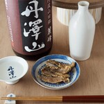 お酒はおすすめに従いまず辰泉・純米吟醸キレカラ、続いて花巴・山廃純米吟醸を冷酒で飲み、燗酒に切り替えて丹澤山・凛峰と隆・純米雄町を。全て90mlで。