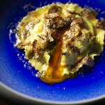 フォークを入れると黒トリュフの香りが広がり、黄身がとろりととろけ出す。慌てて口に運べば、まさに至福だ。