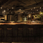2階にある店内には、大きく開放的な窓があり、昼は明るい陽射しが差し込み、夜は行きかう車の流れを眺めながら食事を楽しめます。店の中央には6mのブラックウォールナットのカウンターが存在感を放ち、お洒落で居心地の良い空間が広がっています。客席は個室最大12席、カウンター20席、スタンディングも可能なテーブル6席。1979年製のヴィンテージスピーカーを2台設置していて、昼はラジオ、夜はお酒がすすむ心地よいBGMを流しています。