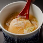 あ、まだまだ終わりませんよ。肉寿司の後はコハダの握りに蟹餡掛けの茶碗蒸しが出てきて、けっこうおなか一杯です(笑)。コースも終盤戦ではありますが、またもやバーナーで何かを炙っています。こちらは銚子港揚がりの金目鯛です。