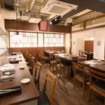 場所は四条から少し離れた烏丸御池、オフィス街のビルの地下1階。肉を焼く煙が立ち込め、年季の入ったカウンターや小上がりの座敷といった昭和レトロな前店舗とは変わり、無煙ロースターを導入し、大正ロマンを感じさせるようなインテリアの店内になっています。昔懐かしい京都の雰囲気の中でゆったりと料理を楽しめます。