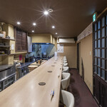 席はカウンター10席と、3名から予約ができる定員6名の完全個室。店内は木目も清々しいカウンターが中央に据えられ、個室も落ち着いた和の雰囲気。カジュアルながらもシックで、日常使いからデート、ハレの日のお祝いまでさまざまなシチュエーションで訪れることができそうです。