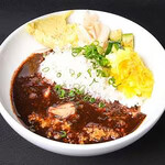 店主に聞くと、このお店のカレーはかつお節、昆布だし、胡麻、そして酢が特徴的で、さらにひき肉が通常の3倍の粗さになっているという。この肉肉しさがサラサラとしたスープに食感をくわえ、そして噛み締めるほどに旨味と、カシミールの辛さを楽しめる。