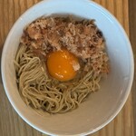 そぼろと言えば炒り尽くしたような印象があるかも知れないけど、こちらのあんかけ風の仕上げはとても好き。卵黄と絡めるとしっかり親子丼。旨い!