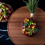 麻布台ヒルズ 森JPタワー33階の「ヒルズハウス」内にオープンした、三國清三シェフプロデュースのグランビストロです。入店すると、一面の窓の外に広がる東京タワーやレインボーブリッジなど、東京随一の眺望に心も浮き立ちます。三國シェフプロデュースでありながら、シェアスタイルの大皿提供ということでランチ6,000円〜、ディナー11,000円〜と手の届きやすい価格帯なのもうれしい限り。