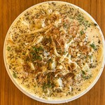 カジュアルなところでは11月6日、中目黒に「魔皿カレー」がオープンです。立ち食いキーマカレー専門店で、有名カレー店「ボンベイ」が監修しているようです。駅の改札から信号を渡ってすぐの山手通り沿いなんですが、元ケバブ屋さんだったそうで、3人並べば満席状態でしかも屋外、カウンターの幅はわずか20センチほど。なかなか無いシチュエーションで楽しくなります。メニューは白・黄・赤と辛くなっていき、さらに特製の玉・魔もあります。白こと、“ゆるキーマのマイルドカレー”をいただきましたが、和風出汁とスパイスが絶妙で、あとを引く旨さ。クセになりそうな味です。
