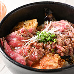他にもUS産牛サーロインの赤身肉を使い、さっぱりと仕上げられた「特製レア焼き丼」(100g・2,200円~)や、開業当初は裏メニューで、評判が良すぎて表メニューとなった、とろけるチーズがたまらない「牛サーロインのチーズはさみ揚げ」2,310円など、同店ならではのメニューが豊富に揃っています。