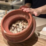 初訪問。パリ一つ星「ラルケスト」の伊藤シェフが経営する店で当日は来日。繊細で独創的な料理を展開。